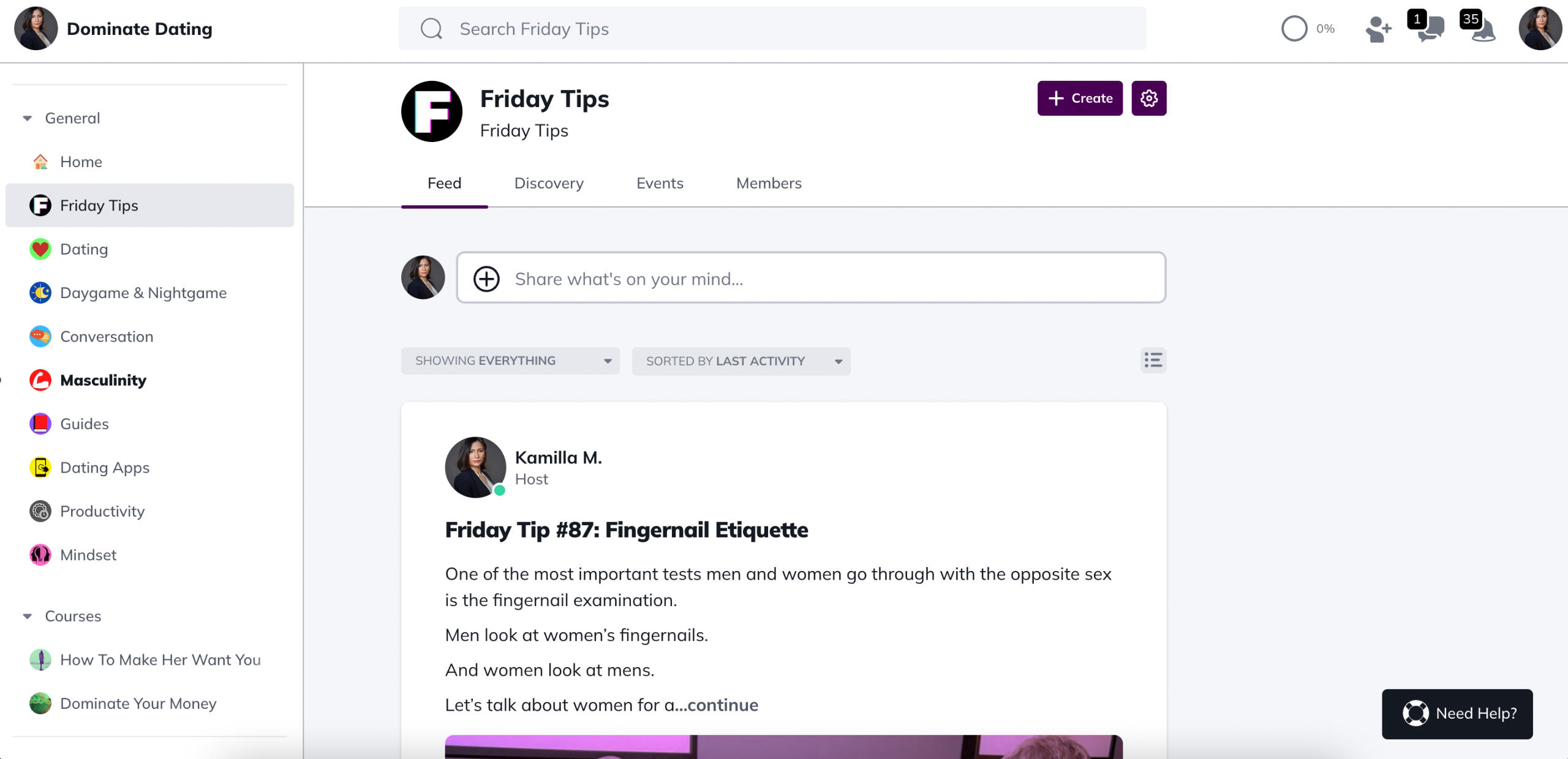 Get Unlimited DM access to Kamilla M. and have all of your questions answered about dating, relationships, and women.