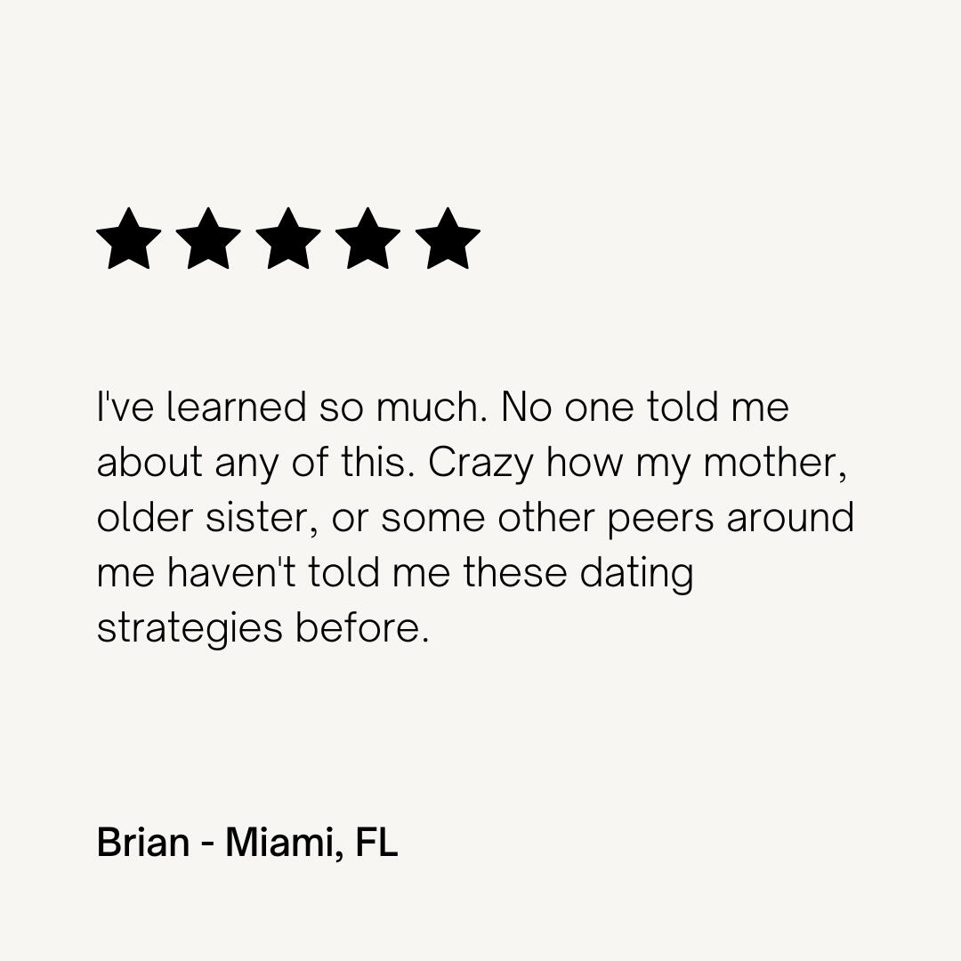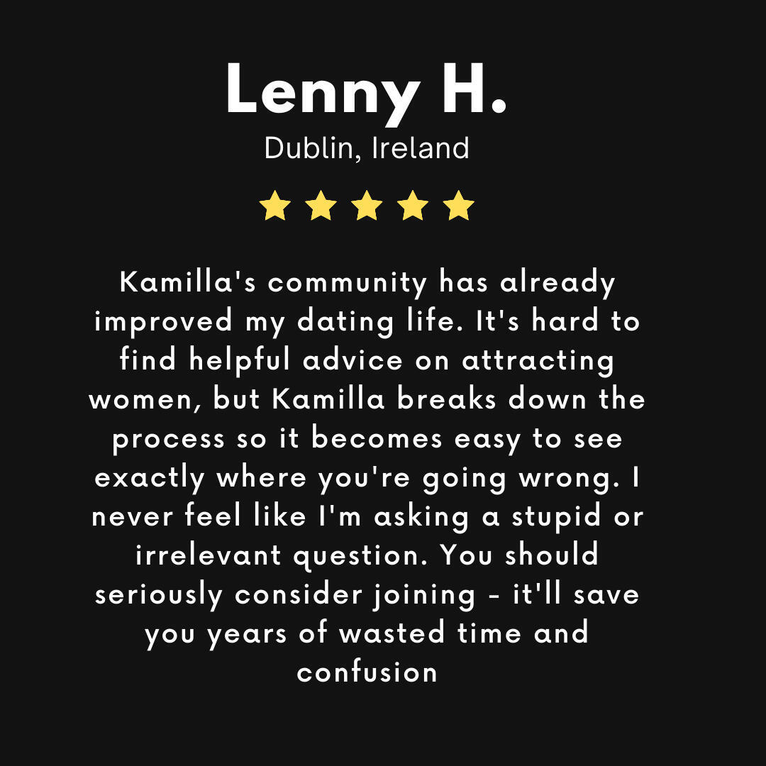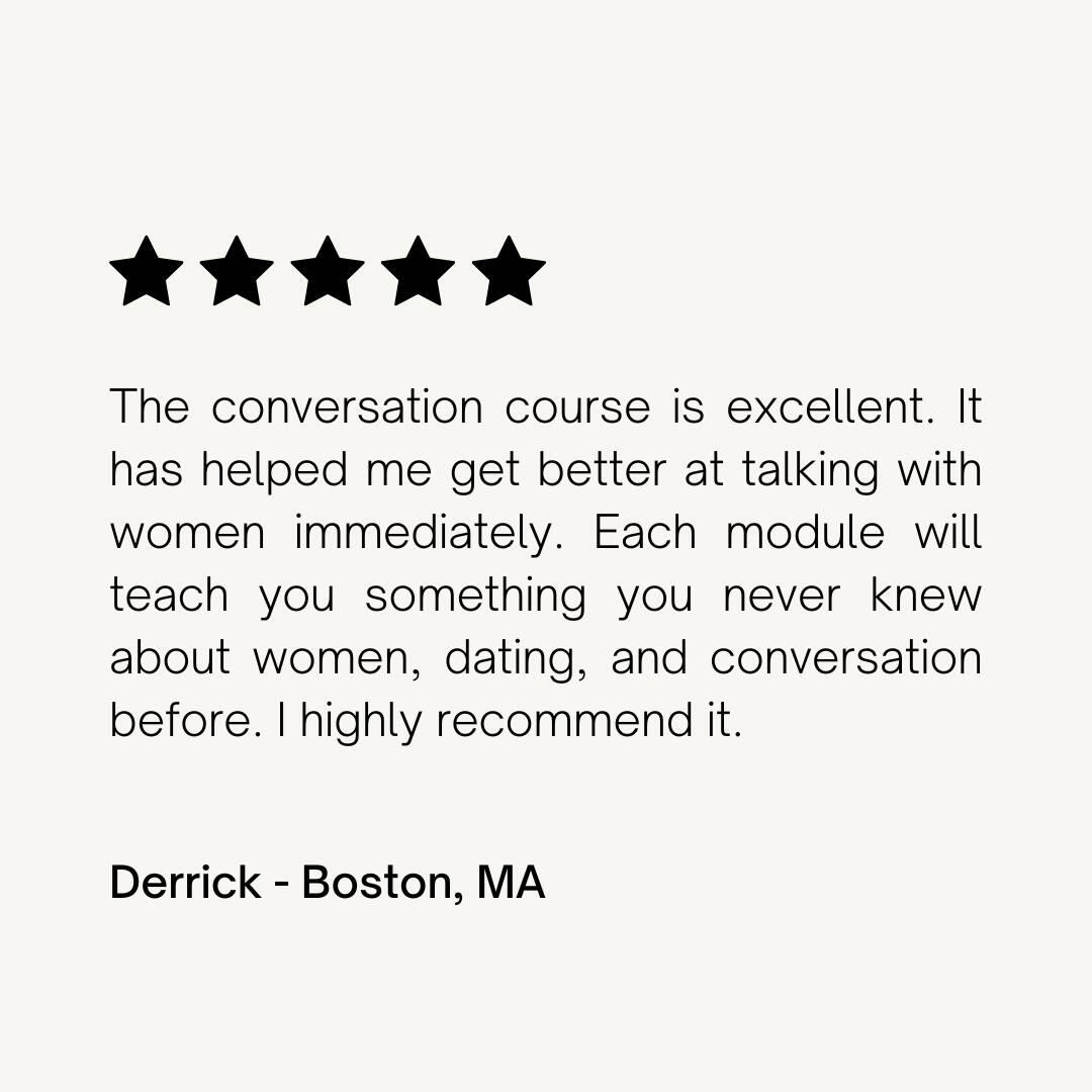 I've been following Kamilla for quite a while and her content has helped me level up my dating and relationship game quite a bit over the past months. Her "Conversation Academy" has been uniquely helpful though. The “Content Diet” module in the course is a game-changer. Having nothing to talk about on dates is no longer a worry for me. It's a punchy set of rules and examples that has specifically helped me out on dates. I made an intentional point to use the principles I found in it on my most recent date - it worked. The conversation was flowing with things that a girl would find more interesting (a big problem of mine in the past) and we planned a second date before it was all over!