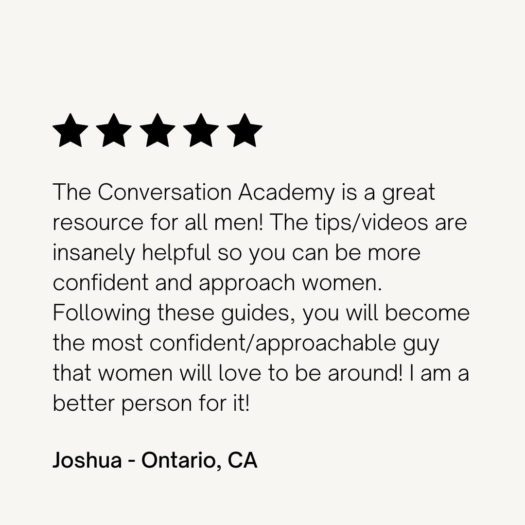 Conversation Academy has been a great resource. This course is not only about approaching a girl and carrying out a conversation. It’s a lifestyle upgrade. The training and resources helped me carry myself in more confident ways in my personal and professional life. This resource is highly recommended for anybody who wants an upgrade in their lifestyle.