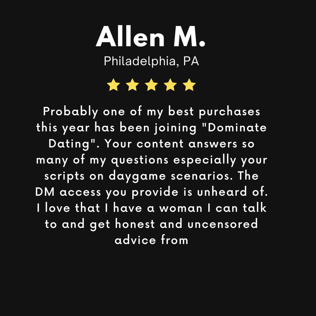 "I followed Kamilla on Instagram for close to six months before buying the Conversation Academy course. I had very high expectations and the course delivered. It is very precise and easy to digest. It helped organize certain parts of my daily life I was not even aware of. I am new to dating and this course along with the Dominate Dating group helped me mentally prepare for dating. Kamilla was also kind enough to help me set up my profile that is gaining traction. As a value add, she does not just talk about relationship dynamics and conversations during dates, but also deep dives into nitty gritty details such as clothing, do's and dont's, female psyche and planning dates."